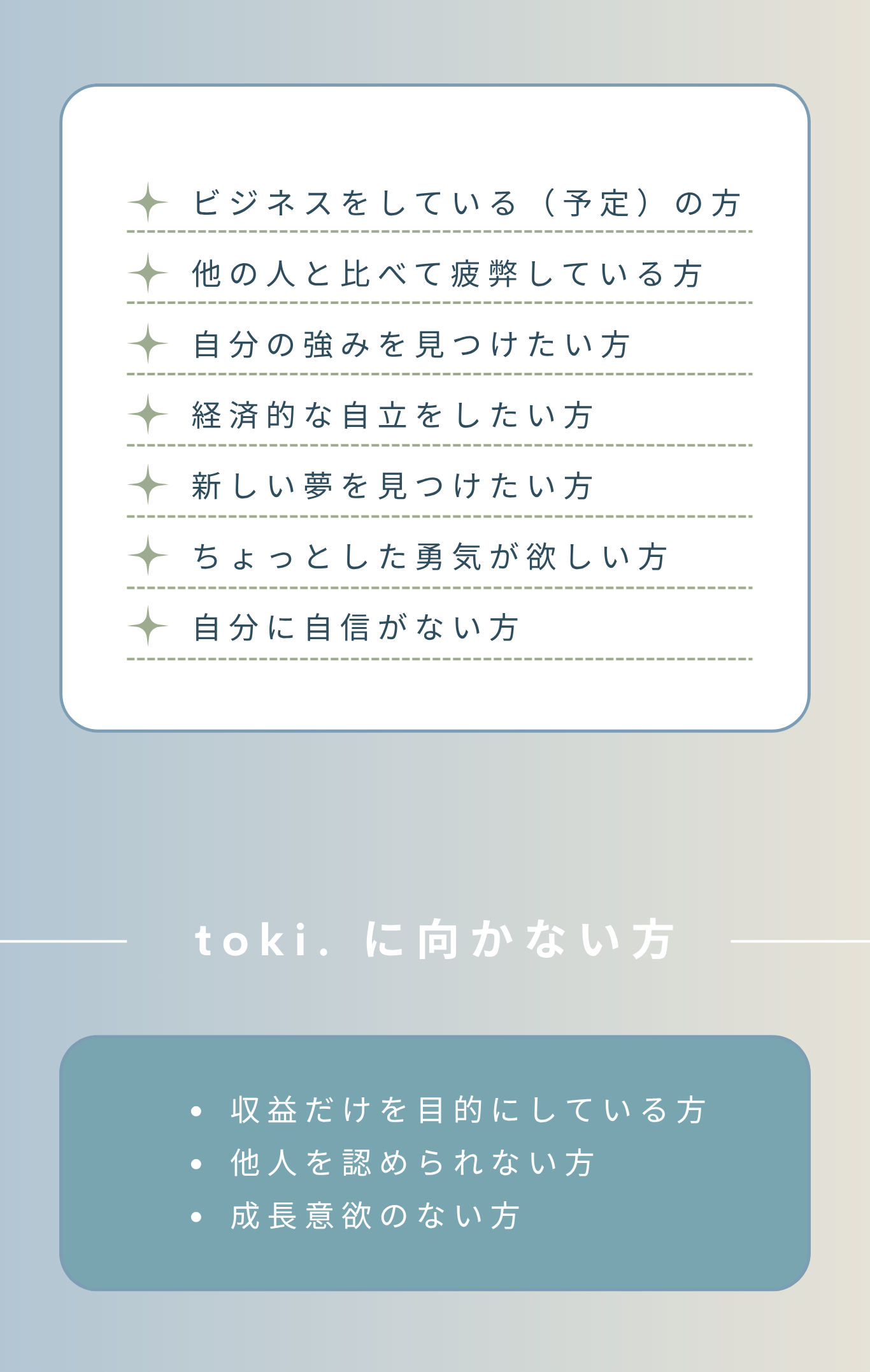 toki.はこれからビジネスを始める方やビジネス初心者の方を対象としたビジネスコミュニティです。